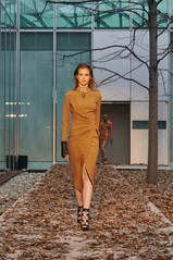 Tutto ciò ha trovato vita in una dicotomia di natura e touch industriale che ha caratterizzato i due eventi del designer durante la Fashion Week. Il primo in piazza Tomasi di Lampedusa e più precisamente “in quel rettangolo fatto di vetro, pareti rivestite in pelle cognac e cemento graffite, bordi in ottone e specchi”, che lo Spazio Lineapelle rappresenta. Il secondo in un luogo metafisico, connotato da suggestioni sensuali e cinematografiche: il giardino racchiuso ancora una volta da vetrate presso il Centro Servizi Fiera Milano Rho, dove le modelle hanno sfilato dando vita ad atmosfere surreali.